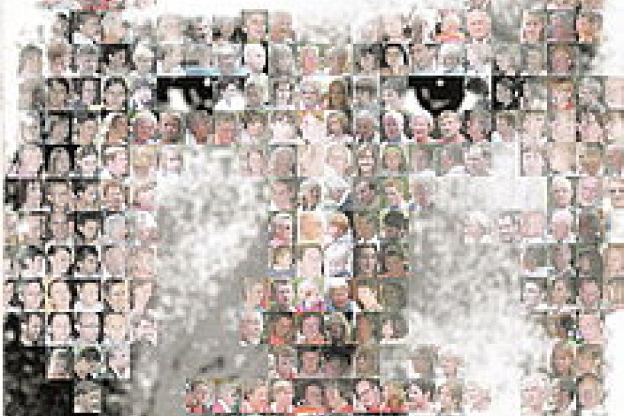 Zum 40jährigen Gemeindejubiläum wurde aus Gesichtern der Gemeinde ein Jesusbild erstellt, denn "Wir sind das Gesicht Jesu Christi auf Erden"!
